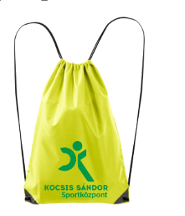 Sárga tornazsák, Kocsis Sándor Sportközpont felirattal.